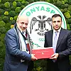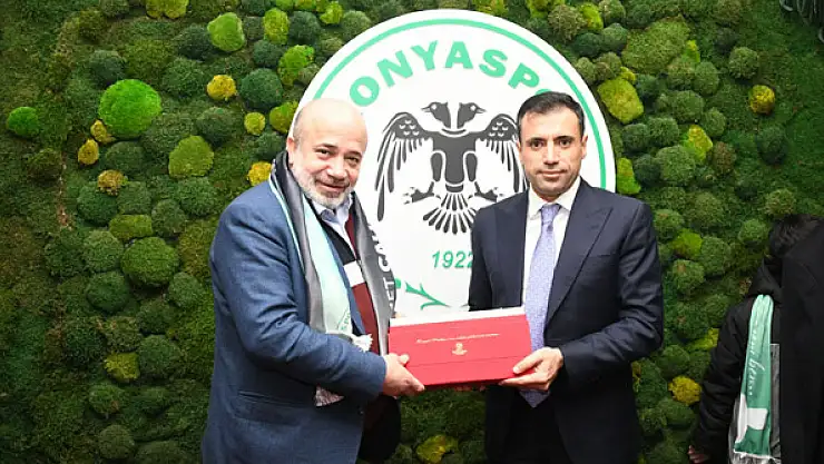 İttifak Holding Konyaspor Kulüp Başkanı Fatih Özgökçen, Adana Demirspor Kulüp Başkanı Murat Sancak'ı maç öncesi ağırlayarak hediye takdim etti.