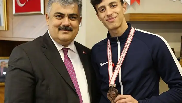 Konya'nın Ereğli İlçe Belediye Başkanı Özkan Özgüven, Konya'da düzenlenen Büyükler Türkiye Tekvando Şampiyonası'nda 3. olan Burak Çetinkaya'yı ödüllendirdi.