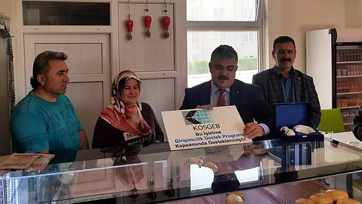 Ereğli Belediye Başkanı Özkan Özgüven, katıldığı girişimcilik kursunun ardından KOSGEB'ten aldığı parayla 1. TOKİ mevkinde açılan işyerini ziyaret ederek tebrik etti.