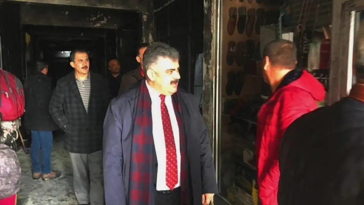 Başkan Özgüven yangında işyerleri zarar gören esnafları ziyaret etti