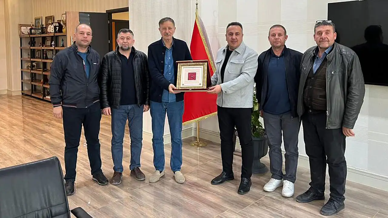 Başkan Ünlügül, ziyaretin sonunda Aslan Korkmaz’a Ahilik Sancağı takdim etti.