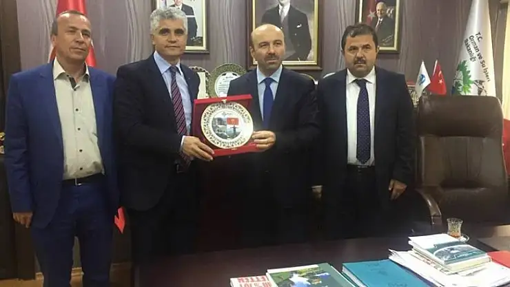 Başkan Gün ziyarette Bozkır’ın kültürel değerlerinin işlendiği tabak hediye etti.