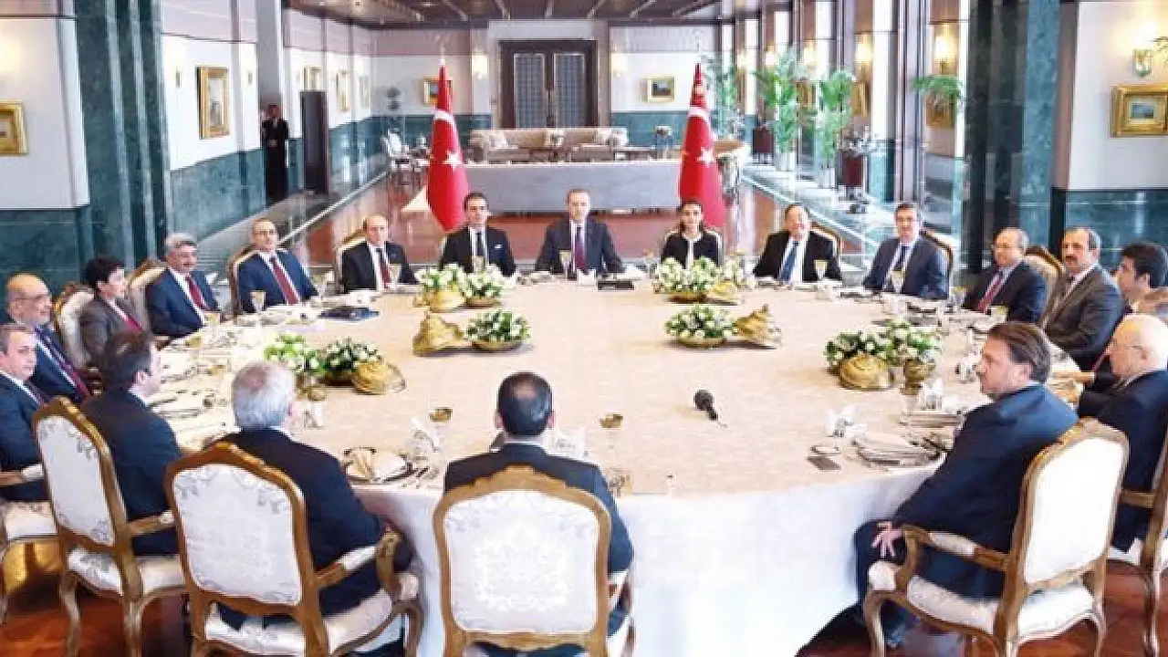 Cumhurbaşkanı Erdoğan, başkanlık sistemi konusundaki çalışmalarıyla tanınan aydınları yemekte ağırladı.