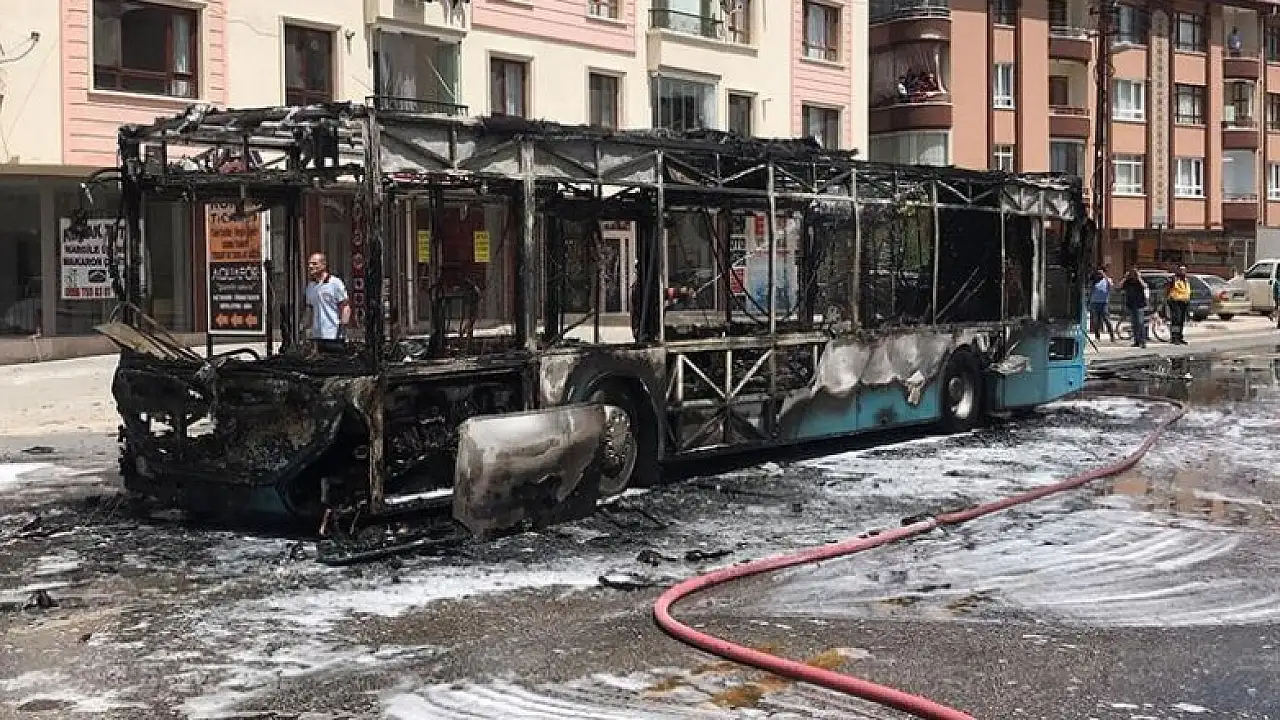 Kısa sürede büyüyerek otobüsü saran alevler, itfaiye ekiplerinin müdahalesiyle söndürüldü.
