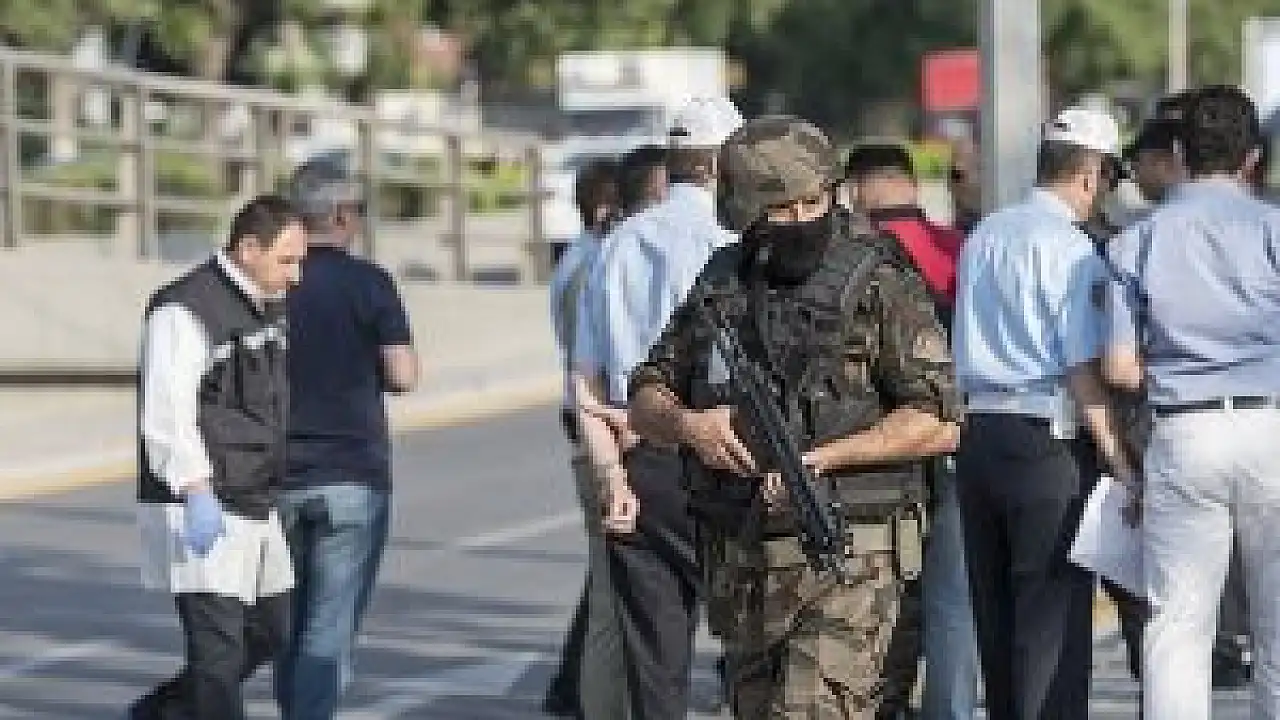 Yaralanan polis memurlarının mesai arkadaşları, araştırma sürerken, olay yeri inceleme ekiplerinden bilgi aldı.