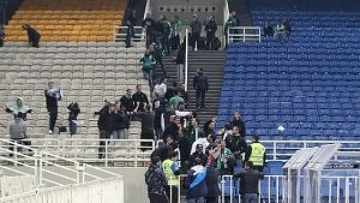 Atina'daki Olimpik Spor Salonu'nda oynanan maç sırasında bomba ihbarı yapıldı. İhbar nedeniyle müsabaka yarıda kesilirken, yetkililer salonunun boşaltılmasını istedi.