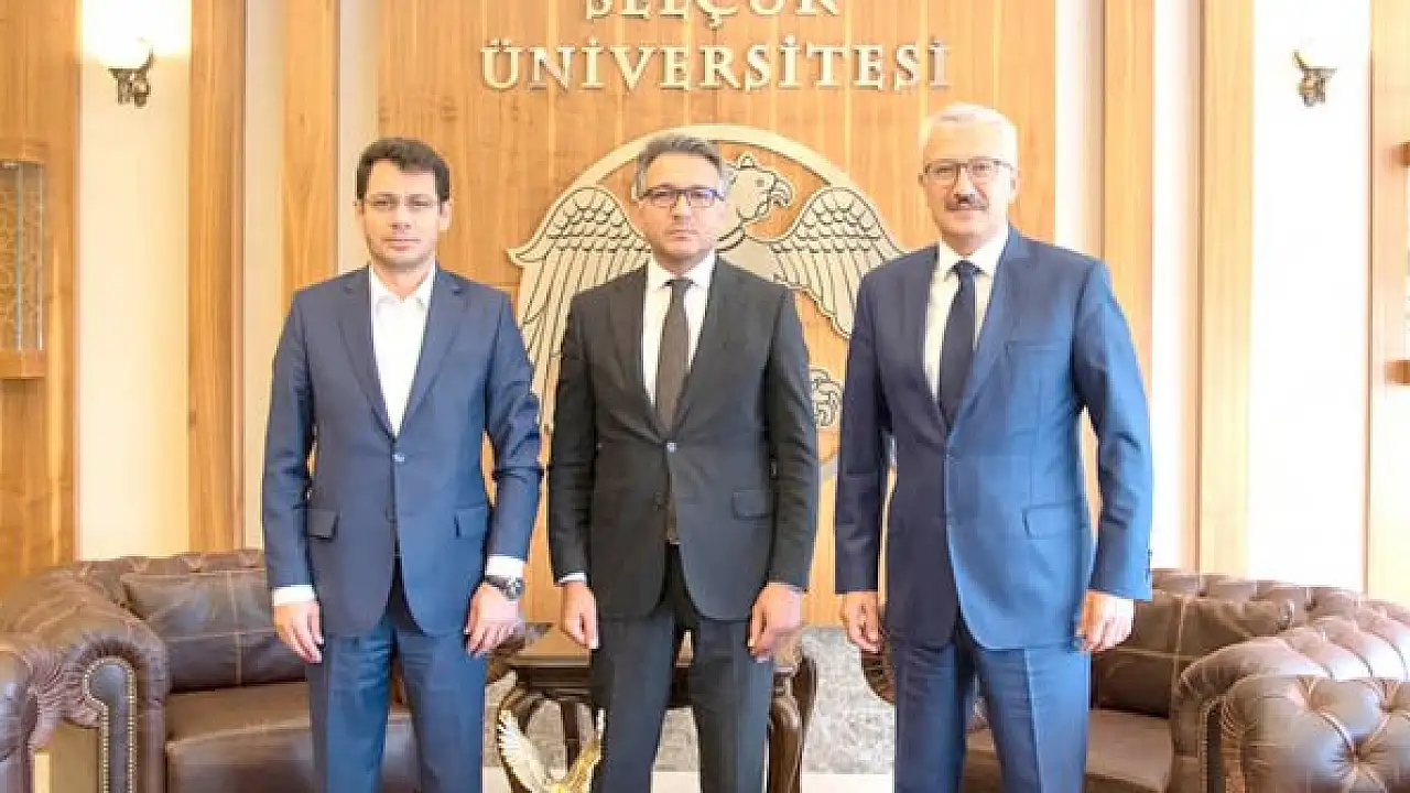 Konya Cumhuriyet Başsavcısı Ramazan Solmaz ve Diyarbakır Cumhuriyet Başsavcısı Mustafa Çelenk, Selçuk Üniversitesi Rektörü Prof. Dr. Metin Aksoy'u makamında ziyaret etti.