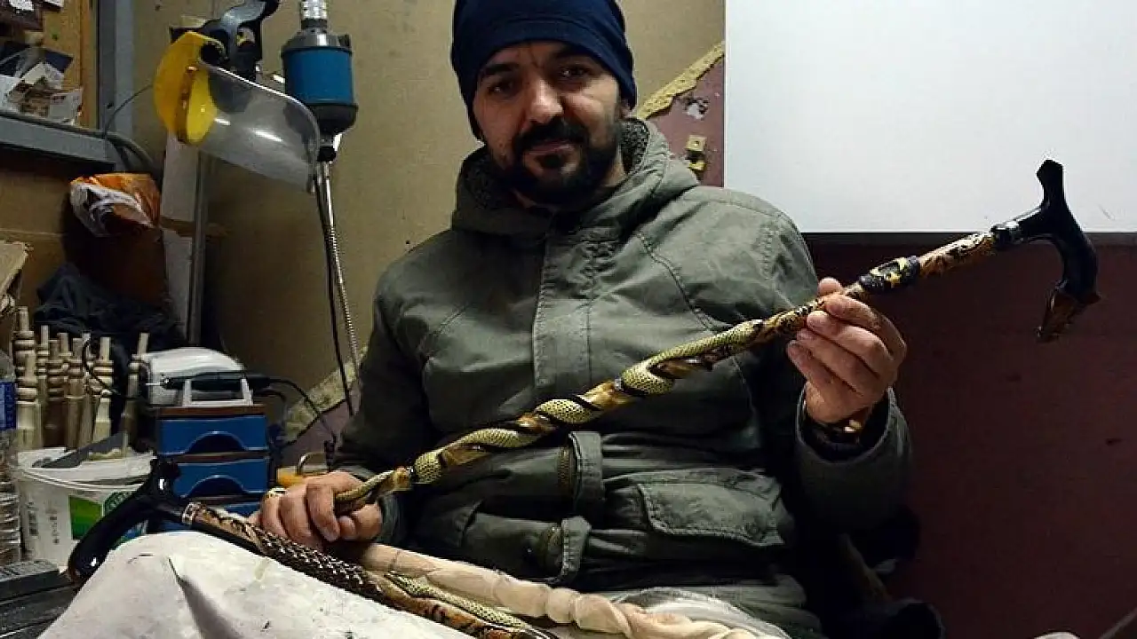 Azmiyle örnek olan ve engelleri "Bana moral veriyor." dediği baston yapımı sayesinde aşan Sinan Karadeli, üretmenin mutluluğunu da yaşıyor.