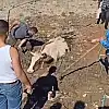 Bursa'da bataklığa saplanan inek vatandaşların yoğun mücadelesi sonrası kurtarıldı.