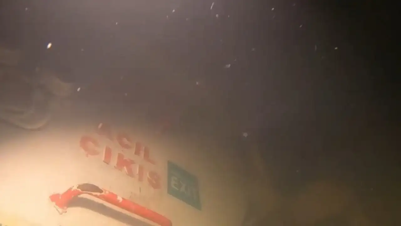 Marmara Denizi'nde batan kuru yük gemisinde iki kişinin cansız bedenine ulaşılırken, geminin makine dairesine girilen merdiven boşluğu dalgıçlar tarafından denizin altında görüntülendi.