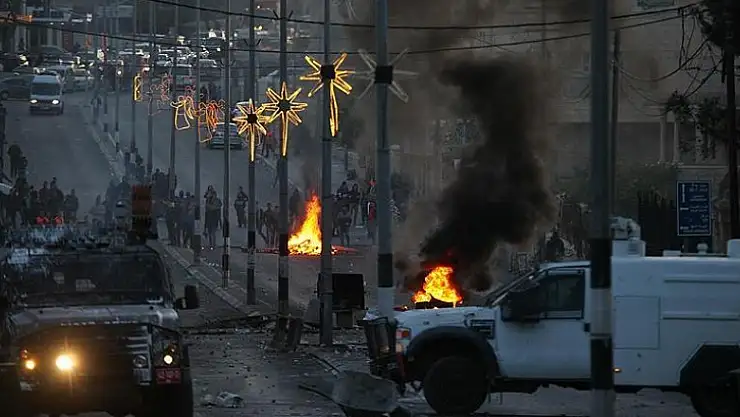 Beytüllahim kentinin güneyindeki Teku beldesinin girişini araba lastikleri yakarak kapatan eylemcilere, askerler, plastik mermi ve göz yaşartıcı gaz kullanarak müdahale etti. Filistinli gençlerin ise İsrail askerlerine taş ve molotofkokteyli atarak karşılık verdiği görüldü.