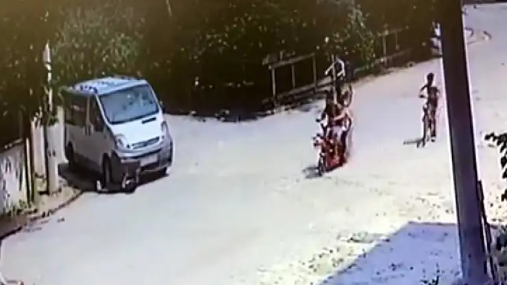 Batuhan'ın minibüsün altında kaldığı kaza kamerada