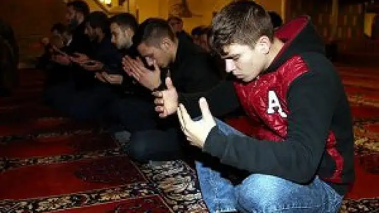 Edirne Eski Cami'de bir araya gelen gençler sabah namazında Suriye'de saldırıya uğrayan Türkmenler için dua etti.