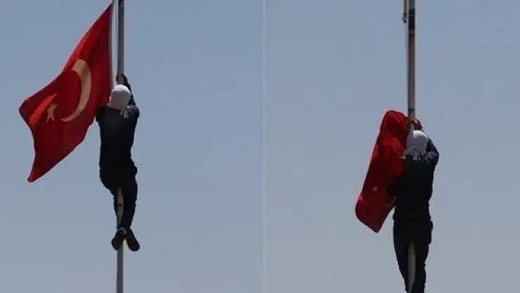 Bayrak indiren provokatör deşifre oldu