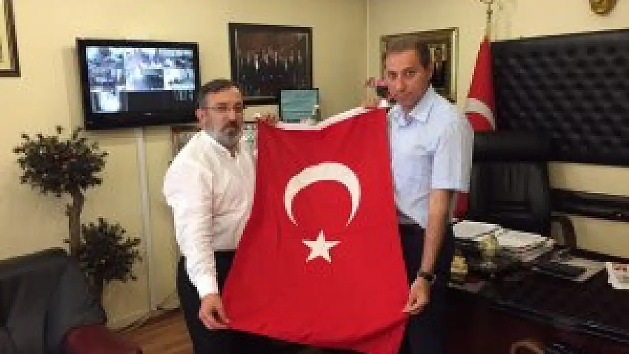 Kampanyaya destek veren Şoförler Odası Başkanı Kemal Can ve Minibüsçüler Odası Başkanı Muharrem Karabacak’a Bayrak hediye eden Tatlısu, oda üyelerinin de duyarlılığına teşekkür etti.