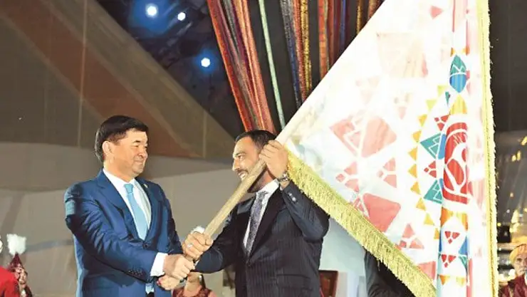 Kırgızistan Başbakanı Muhammedkalıy Abılgaziyev, buzul suyunun yer aldığı kabı ve bayrağı, 2020 yılında düzenlenecek oyunların ev sahibi Türkiye’nin Gençlik ve Spor Bakan Yardımcısı Hamza Yerlikaya’ya teslim etti.