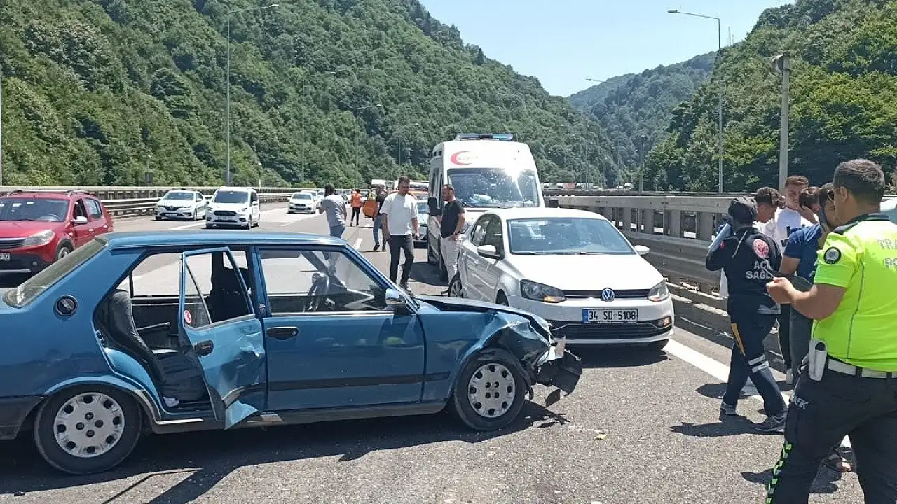 TEM Otoyolu Bolu geçişinde 7 aracın zincirleme kazaya karışması neticesinde uzun araç kuyrukları oluştu.