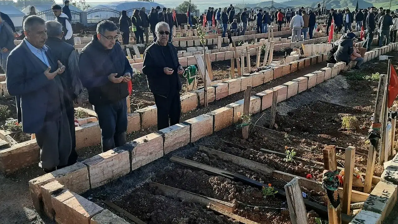 Depremin vurduğu Adıyaman'da vatandaşlar Bayram Namazı sonrasında mezarlığa akın etti.