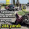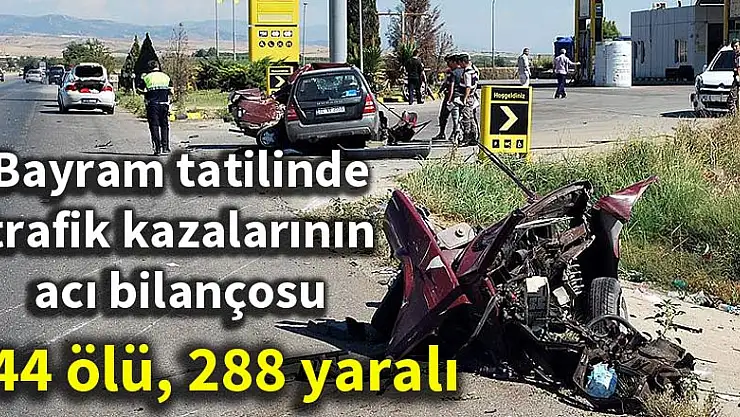 Kurban Bayramı tatilinin başlamasından bu yana yaşanan kazalarda ölü sayısı 44'e, yaralı sayısı 288'e yükseldi.