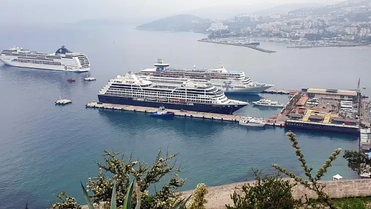AYDIN'ın Kuşadası ilçesine, Ramazan Bayramı'nın 1'inci ve 2'nci günü ulaşan 6 kruvaziyerle toplam 4 bin 709 turist geldi. Bayram sonuna kadar ilçeye deniz yoluyla 3 bin turistin daha gelmesinin beklendiği belirtildi.