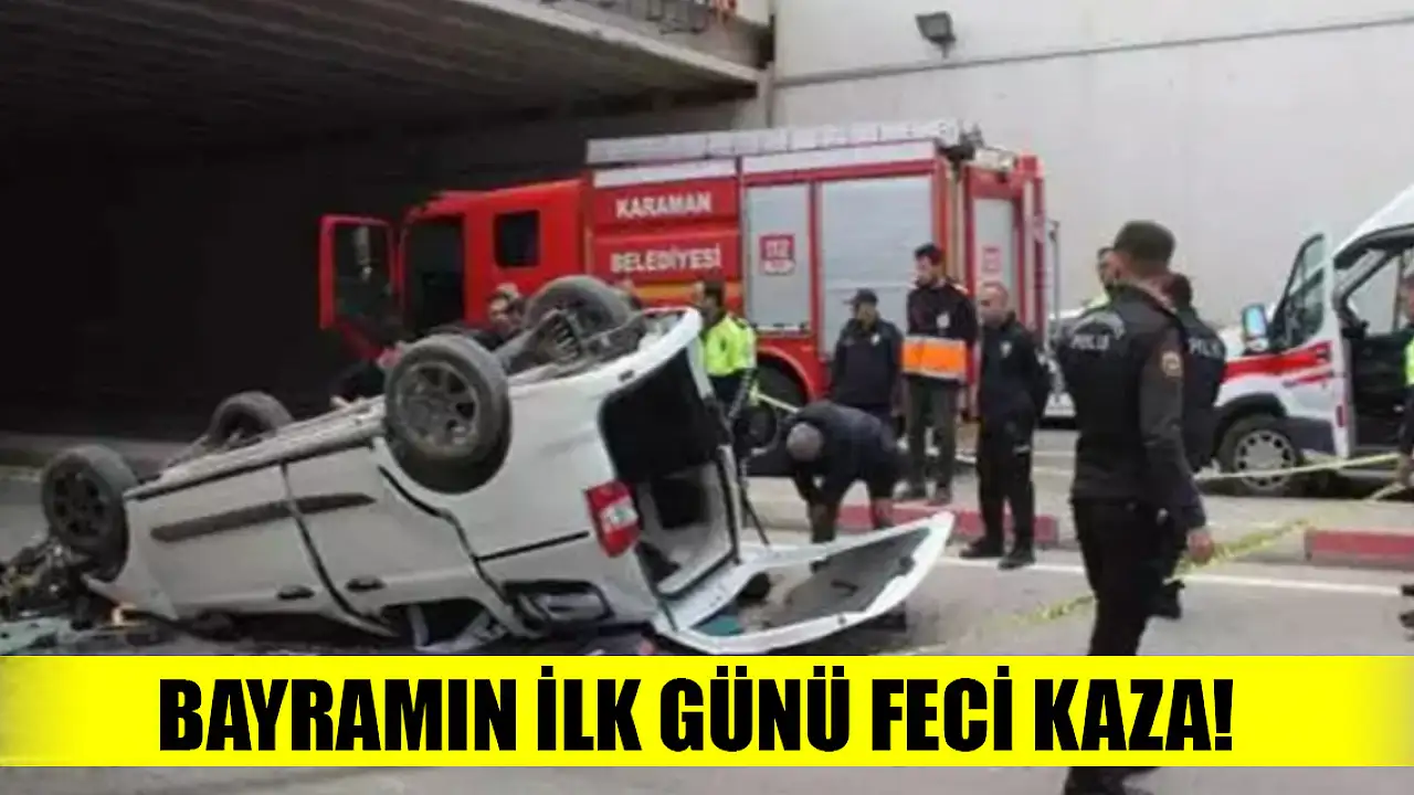 Karaman'da üst geçitten düşen hafif ticari araçtaki 2 kişi öldü, 1 kişi yaralandı.