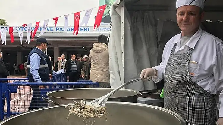 Festivale katılanlar, hamsi ve helvadan alabilmek için uzun kuyruklar oluşturdu.
