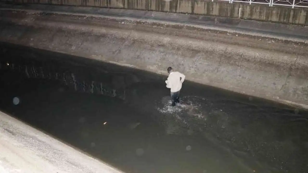Adana'da bekçilerden kaçmaya başlayan bir kişi içerisi boş olan sulama kanalına girerek kaçmak istedi.