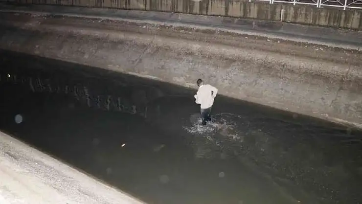 İkna olan Cengizhan F. bıçağı fırlatarak sulama kanalından çıktı. Gözaltına alınan Cengizhan F. polis merkezine götürüldü.