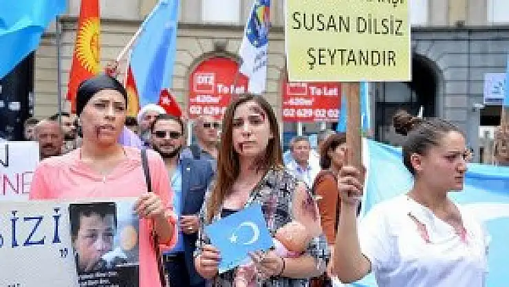 Yaklaşık 200 kişinin katıldığı gösteride, Türk ve Uygur bayrakları sallandı, "Uygurlara Hürriyet", "Uygurlara Özgürlük" sloganları atıldı.