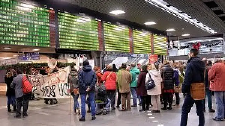 Demiryolu sendikaları üyeleri, Brüksel tren istasyonunda toplanarak yerel saatle 22.00'de 2 gün sürecek grevin başladığını duyurdu.