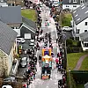 Ardında rengarenk kostümlerle dans eden gençler ve izleyicilere konfetiler atan araçlar kortej oluşturuyor.