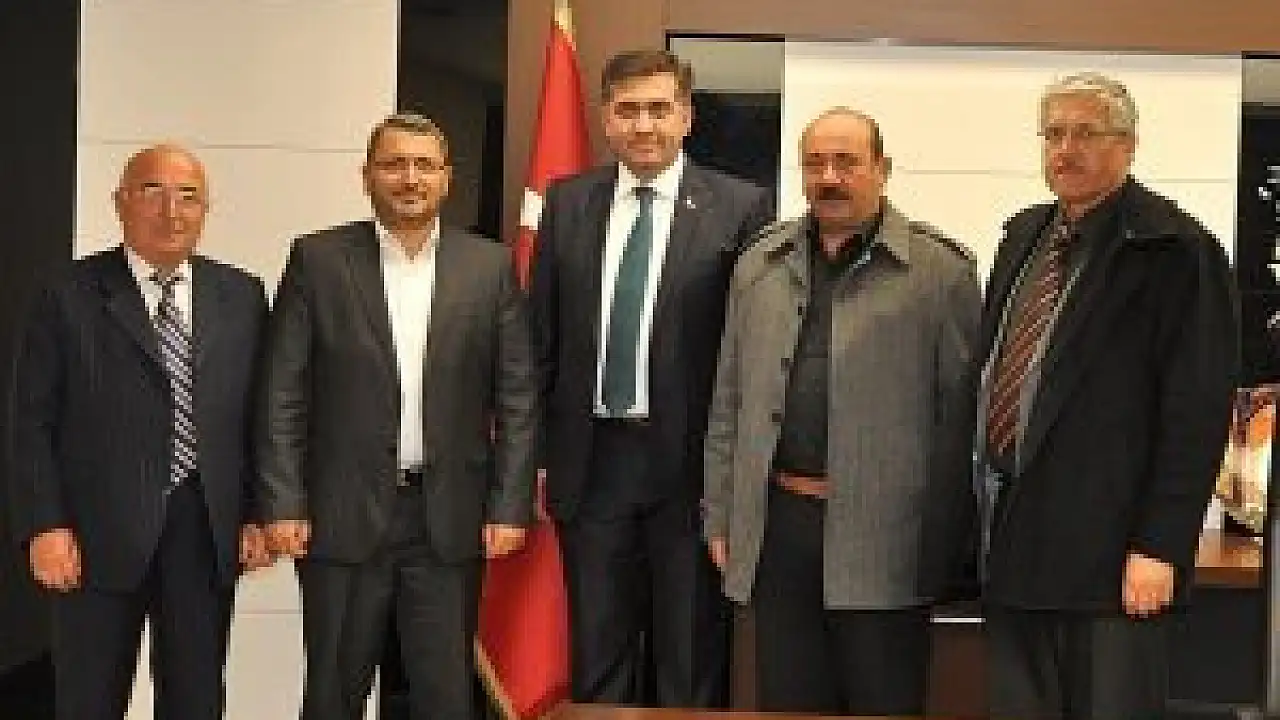 Yeni Büyükşehir Yasası ile 30 Mart'tan itibaren mahalle haline gelecek beldelerin belediye başkanları, Meram Belediye Başkanı Serdar Kalaycı'ya veda ziyaretinde bulundu.