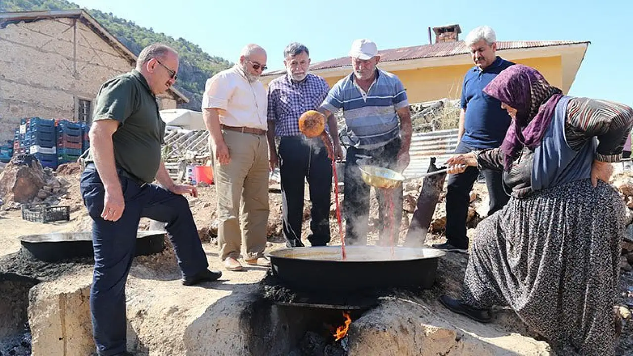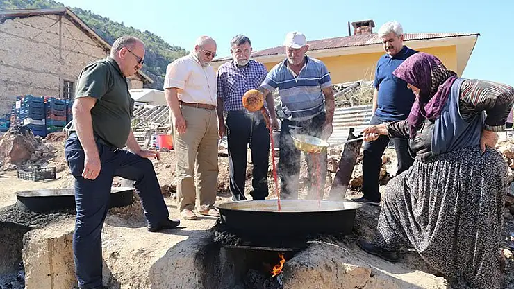 Hadim Belediye Başkanı Ahmet Hadimioğlu, ilçede pekmez kaynatan çiftçilerle buluştu.