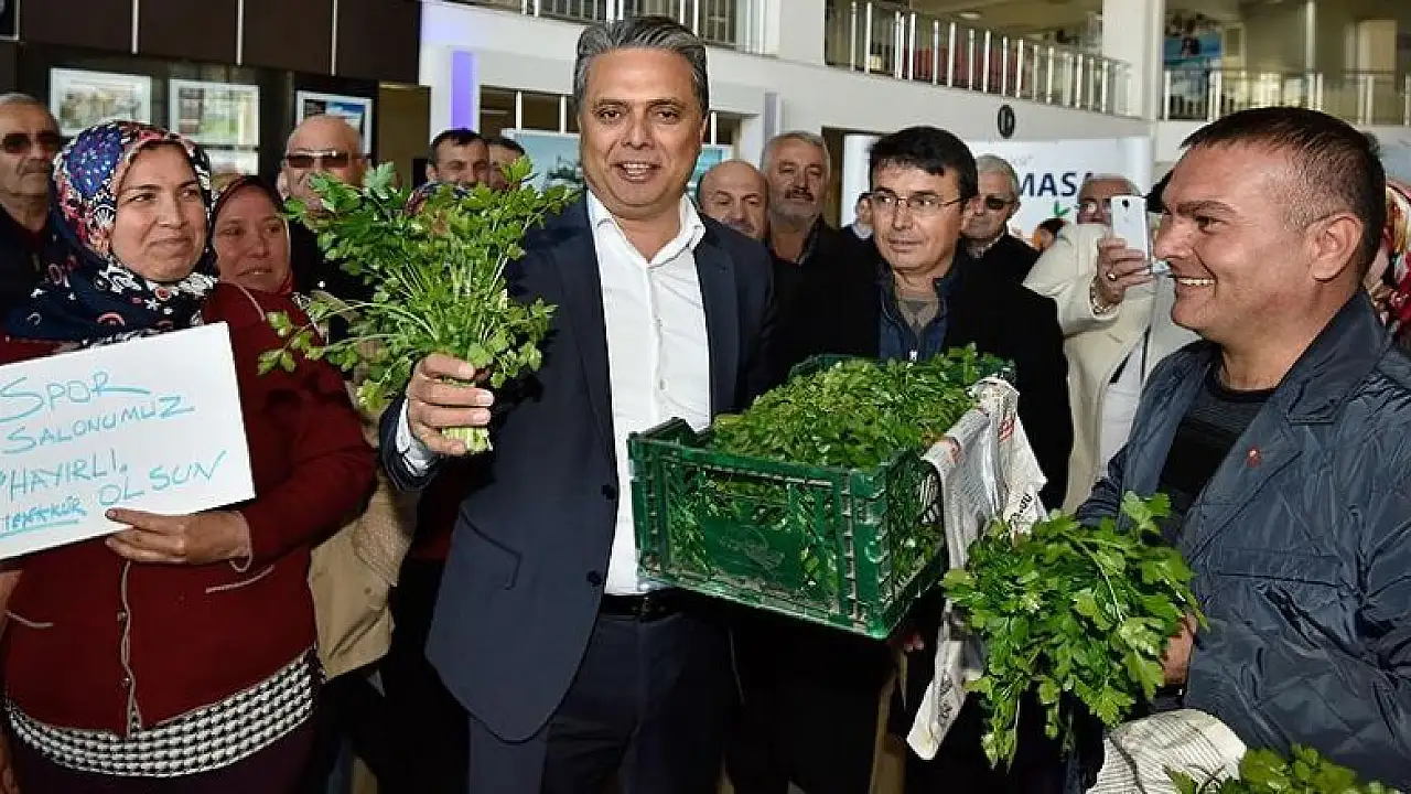 Antalya'da tarımla geçimlerini sağlayan kadınlar, kendilerine kapalı alanda spor yapma imkanı sunan Muratpaşa Belediye Başkanı Ümit Uysal'ı ziyaret ederek hediye olarak çiçek yerine ürettikleri maydanozları verdi.