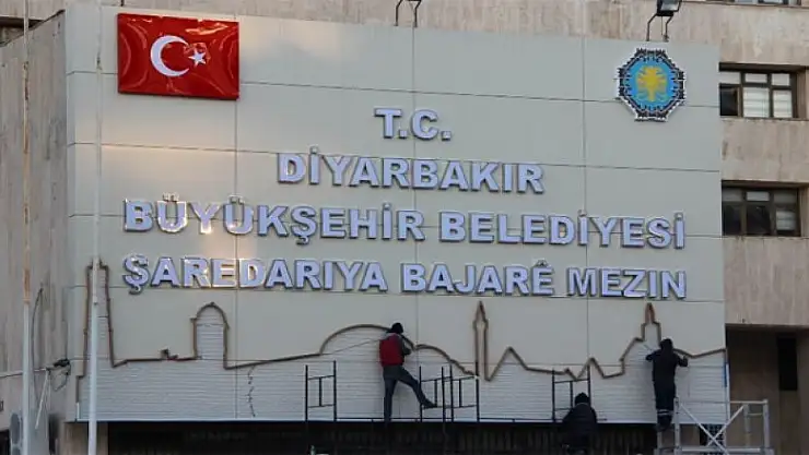 Kayyum atanan Diyarbakır Büyükşehir Belediyesinin eskiyen Kürtçe ve Türkçe tabelası geçtiğimiz günlerde değiştirilerek yerine yenisi asılmıştı. Tabelaya Türk bayrağı da eklenmişti. Yapımı tamamlanan tabelada Diyarbakır siluetine de yer verildi.