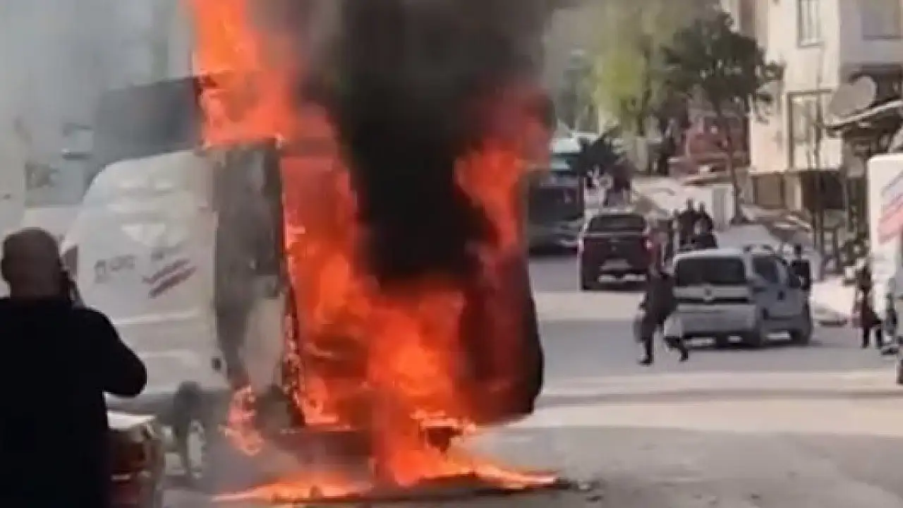 Kocaeli'nin Körfez ilçesinde belediyeye ait panelvan araç alev topuna döndü, yangın saniye saniye görüntülendi.
