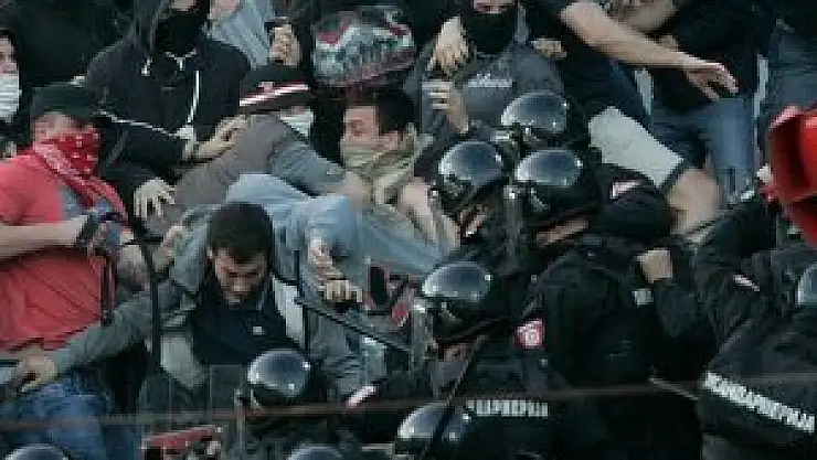 Başkent Belgrad'daki Rajko Mitic Stadı'nda oynanan karşılaşmanın ilk yarısının sonuna doğru tribünde iki takım taraftarları arasında çıkan arbedede çok sayıda taraftar yaralandı. İki takım taraftarlarının birbirine sandalye atması üzerine polis olaya müdahale etti.