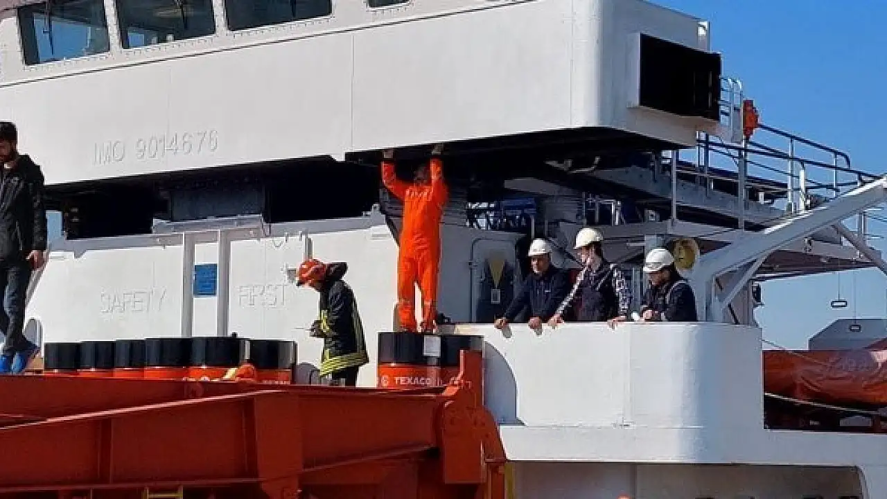 Beli tutulan gemi personeli itfaiye operasyonu ile kurtarıldı
