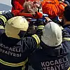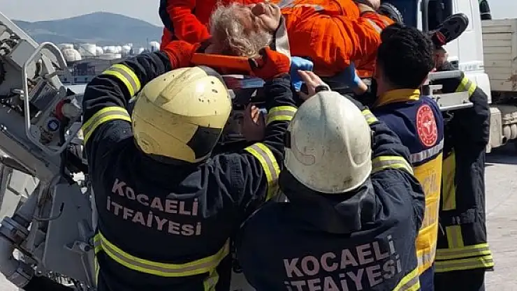 Kocaeli'nin Körfez ilçesinde, beli tutulduğu için gemide mahsur kalan personelin yardımına, itfaiye ekipleri yetişti.