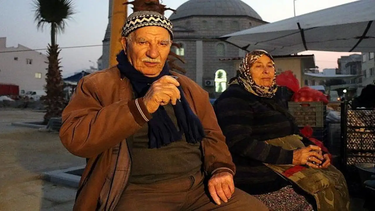 Germencik'te kurulan pazarda yükselen sesler arasında, 80 yaşındaki Fidan ve 81 yaşındaki Veli İnce, tezgah başındaki neşeli, birbirlerine olan sevgilerini ortaya koyan tavırlarıyla ilgi topluyor.