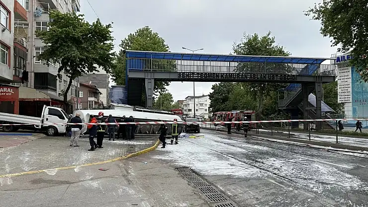 Kocaeli'nin Gölcük ilçesinde benzin yüklü tanker refüjü aşıp karşı şeride geçerek önce üst geçidin merdivenlerine, ardından da park halindeki 4 araca çarptı. Devrilen tankerden sızan benzin nedeniyle ekipler çevrede geniş güvenlik önlemi alırken, patlama riskine karşı yakında bulunan evler tahliye edildi. Ekiplerin bölgede çalışması devam ederken tankerdeki akaryakıtın boşaltılmasının ardından D-130 kara yolu da ulaşıma açılacak.