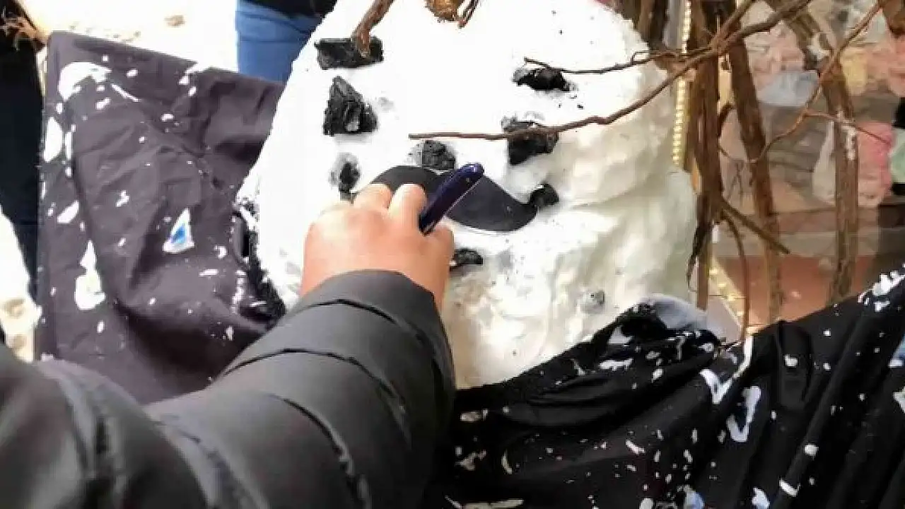 Berber müşteri bulamayınca kardan adamı tıraş etti