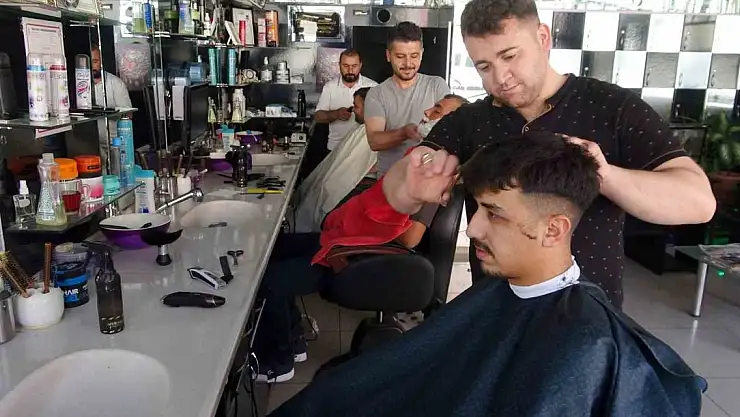 Bayram için saç ve sakal tıraşı yaptırmak isteyenler, berber ve kuaför salonlarında sıra oluşturdu. Yoğunluk sebebiyle gecenin geç saatlerine kadar çalışan berberler, vatandaşları bayrama hazırlıyor. Kentte uzun yıllar kuaförlük yapan Metin Fidan, yoğunluğun yaklaşık 1 hafta önce başladığını söyledi.