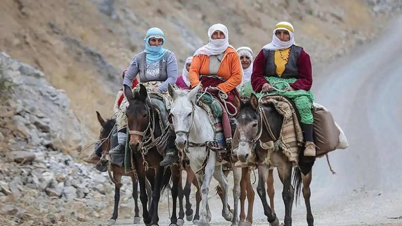 Katır sırtında vadi ve sarp kayalık yolları aşan kadınlar, üç saatlik yolculuğun ardından 3 bin rakımda koyunların otlatıldığı yaylalara ulaşıyor.