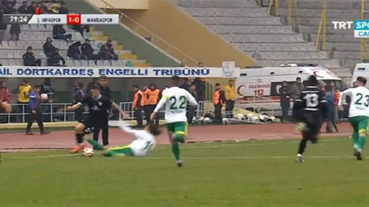Şanlıurfaspor'un Manisaspor'u 2-0 yendiği maç insanlık dışı bir faule sahne oldu. Ev sahibi takımın futbolcusu Berkay Değirmecioğlu, Bahattin Köse'ye yaptığı hareketle oyundan atılırken pozisyonu izleyenler gözlerine inanamadı.