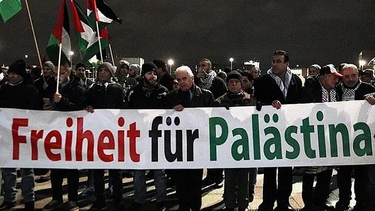 Arap ve Filistinli sivil toplum örgütleri tarafından Berlin Merkez Tren İstasyonu önündeki Washington Meydan’ında düzenlenen gösteride "Filistin’e özgürlük" pankartı açıldı.