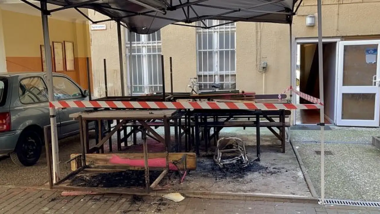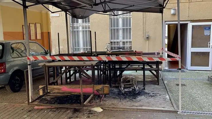 Avluda bulunan masa ve sandalyelerin yandığı, kimsenin zarar görmediği belirtilen açıklamada, mevcut bulgulara göre bunun kundaklama olduğunun varsayıldığı kaydedildi.