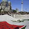 Almanya'nın başkenti Berlin'de 100 bini aşkın kişi Filistin'e destek için yürüdü.