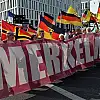 Merkez tren istasyonunda yapılan konuşmalardan sonra yürüyüşe geçen aşırı sağcı grup üzerinde "Merkel gitmeli" yazan bir pankart açtı.
