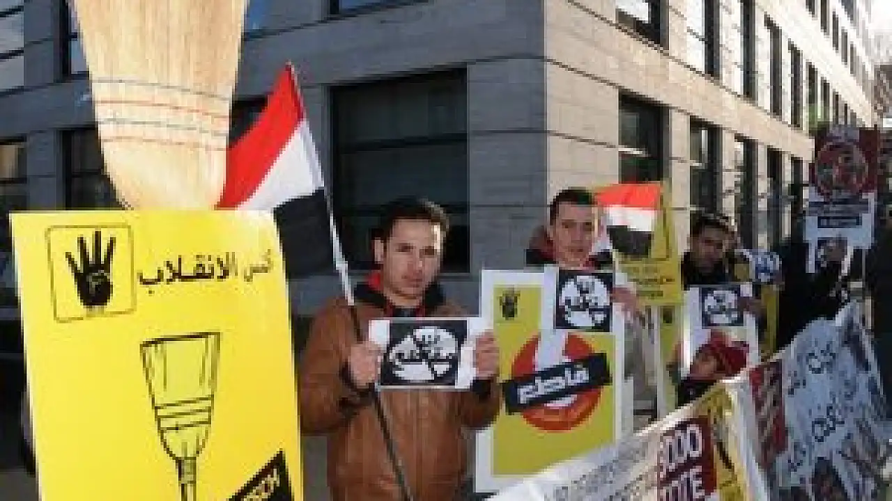 Almanya'nın başkenti Berlin'de yaşayan Mısırlılar, ülkelerindeki darbeyi ve yapılacak anayasa referandumunu protesto etti.